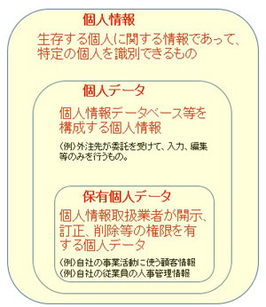 個人情報をデータベース化した場合、そのデータベースを構成する個人情報を「個人データ」といいます。